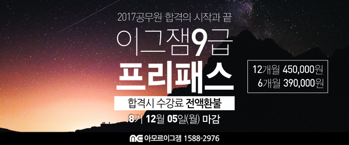 #아모르이그잼 #2017 #이그잼9급 프리패스 #공무원 합격의 시작과 끝 #합격시 전액환불 #8기 #12월 4일 마감 #12개월 45만원 #6개월 39만원