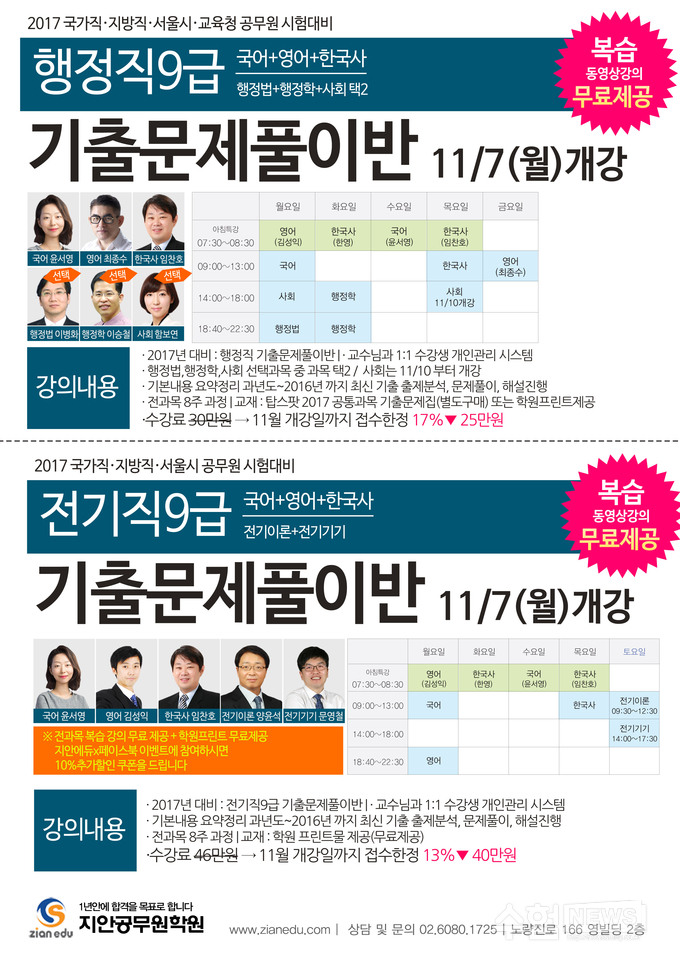 #지안공무원학원 #행정직9급 #전기직9급 #기출문제풀이반 #11월7일개강 #2017년대비 #시간표 #복습동영상강의 #무료제공