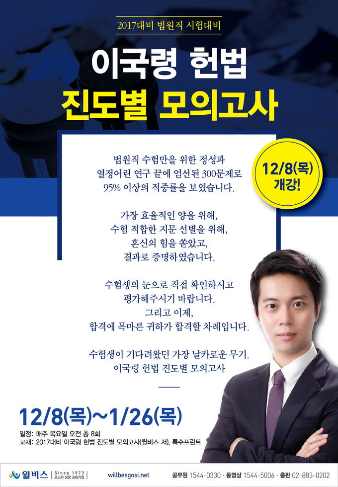 [윌비스고시학원] 2017 법원직 대비 이국령 헌법 진도별 모의고사 12월 8일 개강