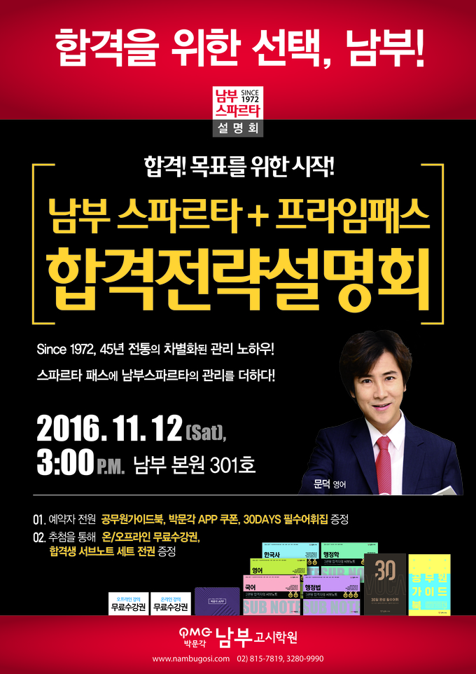 #남부고시학원 #스파르타 #프라임패스 #공무원 #합격전략설명회 #11월 12일 오후 3시 #예약자 전원 선물증정 #문덕영어